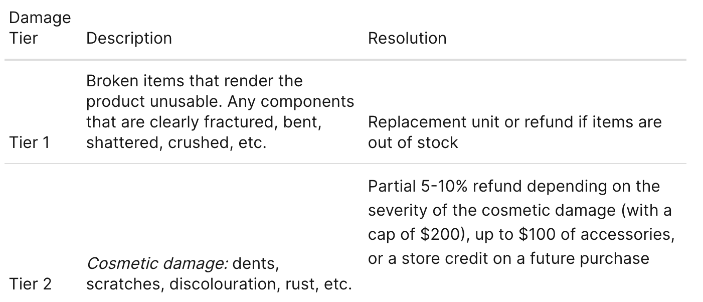 Apollo requires further evidence of the customer’s damaged item (i.e. more photos, videos, etc.). Customer will need to include a photo of the odometer reading. Any reading higher than zero will result in the claim being denied. If your Ship+ Claim is denied, you may still be eligible for: