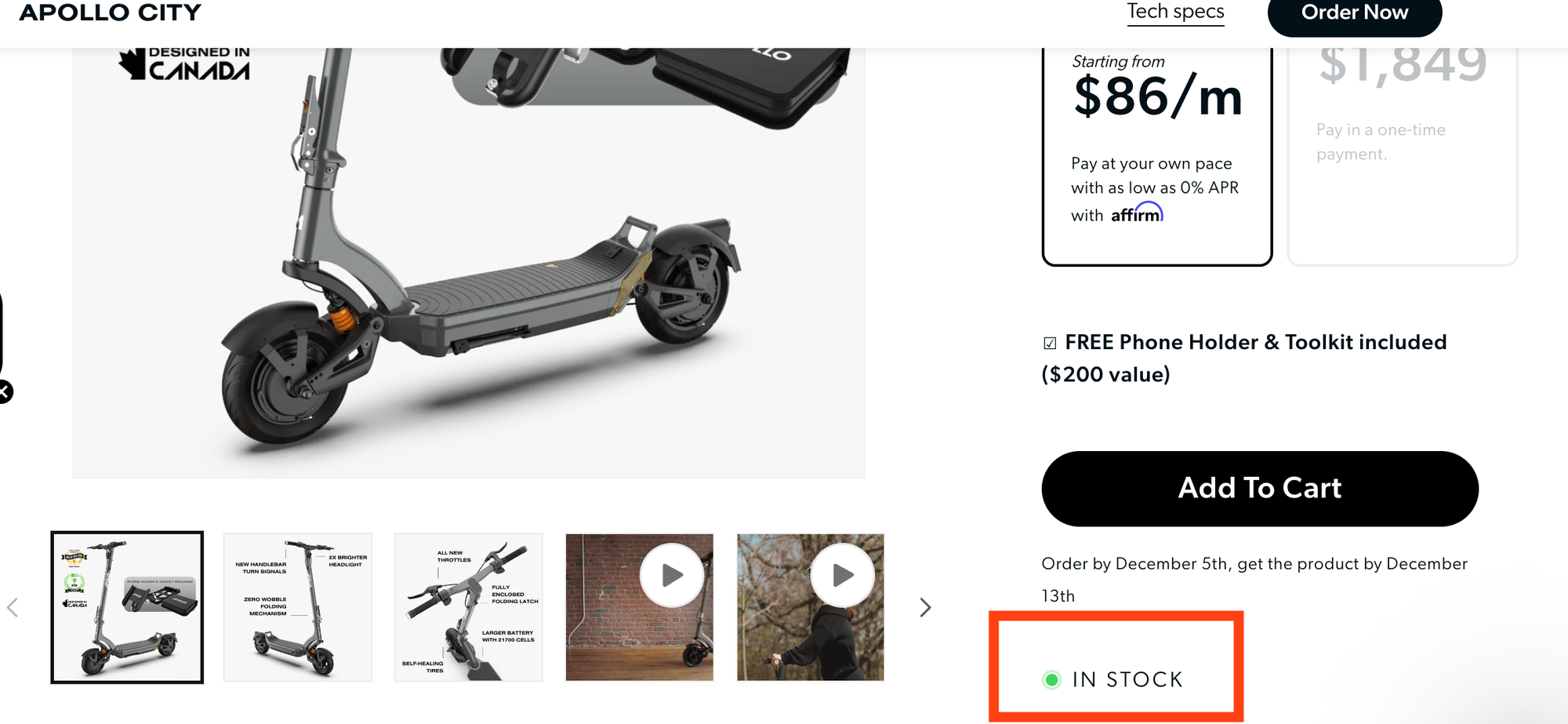 To determine whether a scooter is currently in stock, look for the "(In-stock)" indication on its product page. If a scooter is unavailable, it will be labeled as "Sold Out." For units available for Pre-Order, check the expected shipping date provided in brackets.