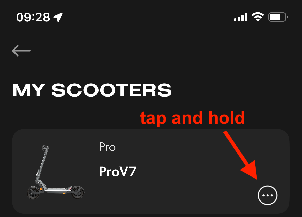 To view the PIN, go to Settings > My Scooters > tap and hold the three-dot icon on the scooter card to reveal a sub-menu, then tap "Show PIN".
