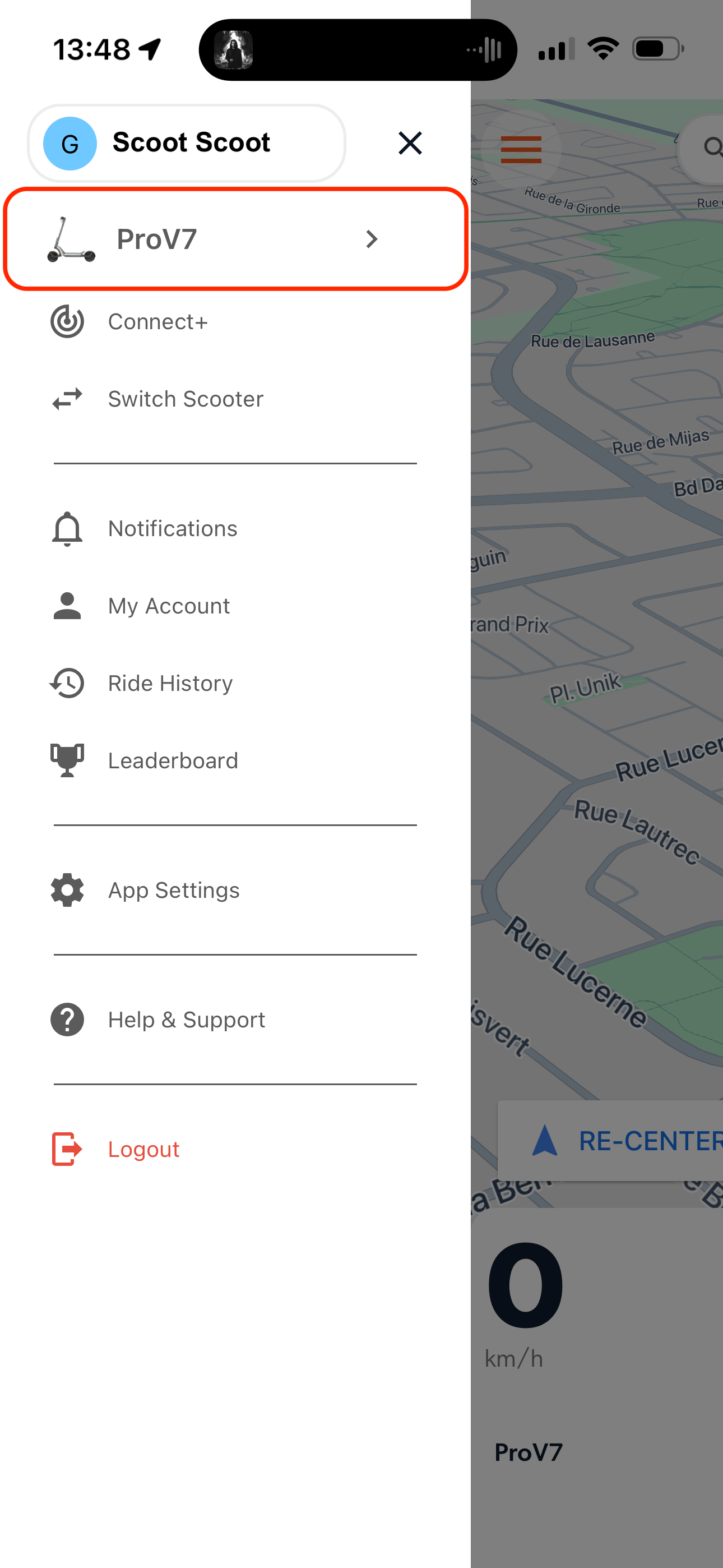 - Open the Apollo app and tap on your scooter’s name from the sidebar.
